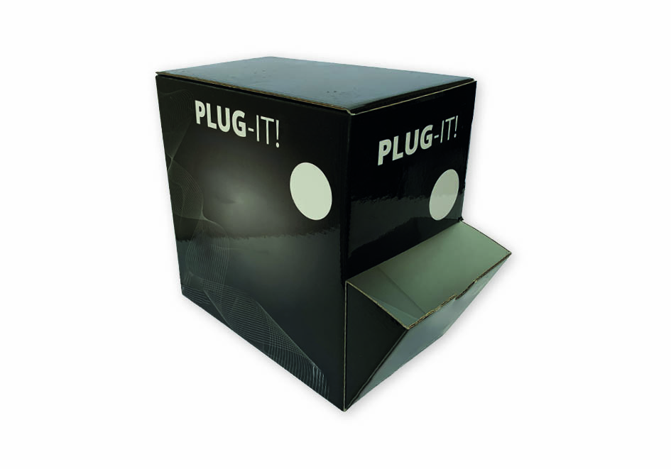 Dispenser doos op maat gemaakt 125x115x170 mm. Bedrukt in full color.